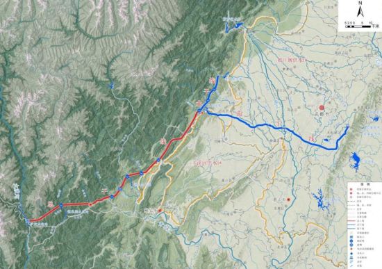 工程由總干線、南干線、北干線組成。總干線從大渡河干流瀘定水電站庫區引水,至成都三壩水庫庫尾分南、北干線,輸水線路總長261公里。工程估算總投資575億元,總工期96個月。